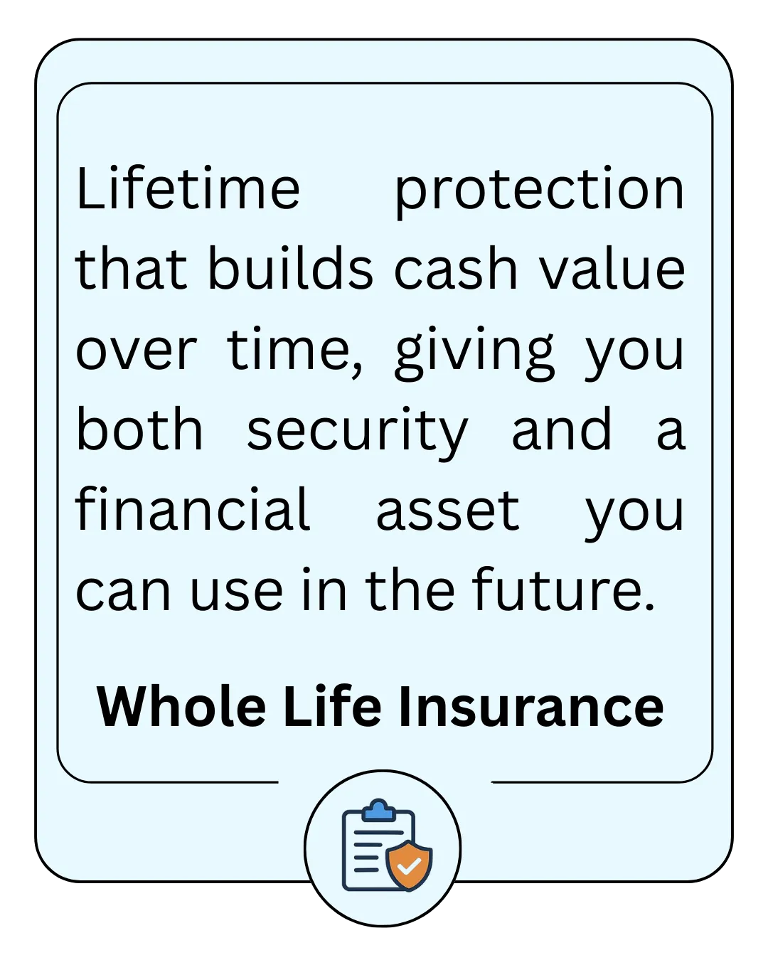 Term Life covers you for a set period (e.g., 10–30 years) at a lower cost—great for budget-friendly protection. Whole Life lasts your entire lifetime, builds cash value, and can be used as a financial asset.